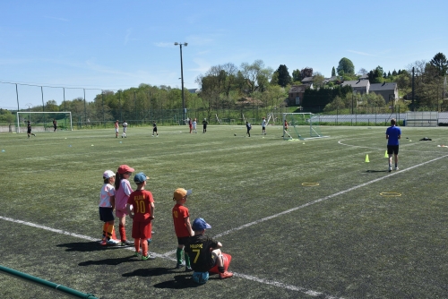 Nul doute que les 45 jeunes âgés de 5 à 14 ans ainsi que leurs entraîneurs ne pouvaient imaginer que ce stage printanier sur le terrain synthétique de la plaine d’Hubinne allait se transformer en stage estival, voire caniculaire pour le plus grand plaisir de tous !