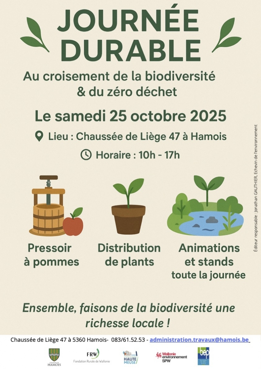 Le samedi 25 octobre, la Commune de Hamois met la nature et le développement durable à l’honneur lors d’une journée conviviale et engagée.
