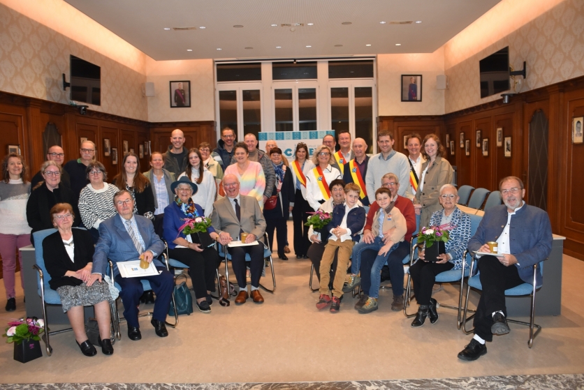 Le déroulement de cet hommage aux jubilaires est identique : message d’introduction en wallon par Luc Fontaine, échevin des langues dialectales, lecture par le bourgmestre du message adressé par le Palais Royal à l’adresse de chaque couple et remise de cadeaux (chèques de commerce, fleurs, copie de l’acte de mariage et du message et un pot de miel du rocher cinacien)