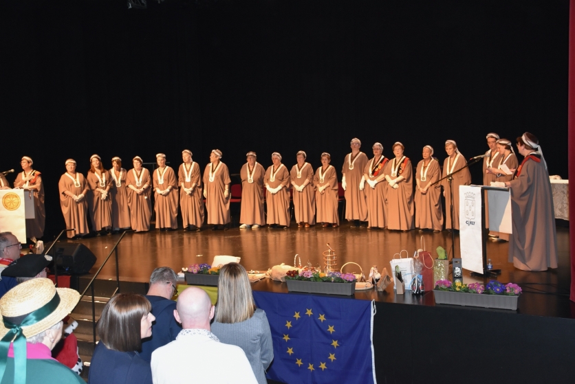 C’était une première pour Marie Anne Gauthier, de présider en tant que Grande Dame Primicière un chapitre. 45 confréries dont 6 françaises étaient présentes pour suivre le chapitre au théâtre communal de Ciney et 250 personnes ont participé au repas assuré par le traiteur Luc Stiénon.